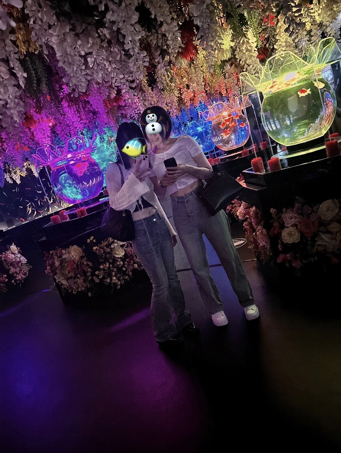 先日、銀座のアクアリウム展を観に行ってきました!🐠とても幻想的で癒し空間でした🫧中にはお疲れ気味の金魚もいて可哀想でしたが、、🥹それと、その日の服装がたまたま友達と似ていてパシャリ📸👯‍♀️楽しい休日でした🥰