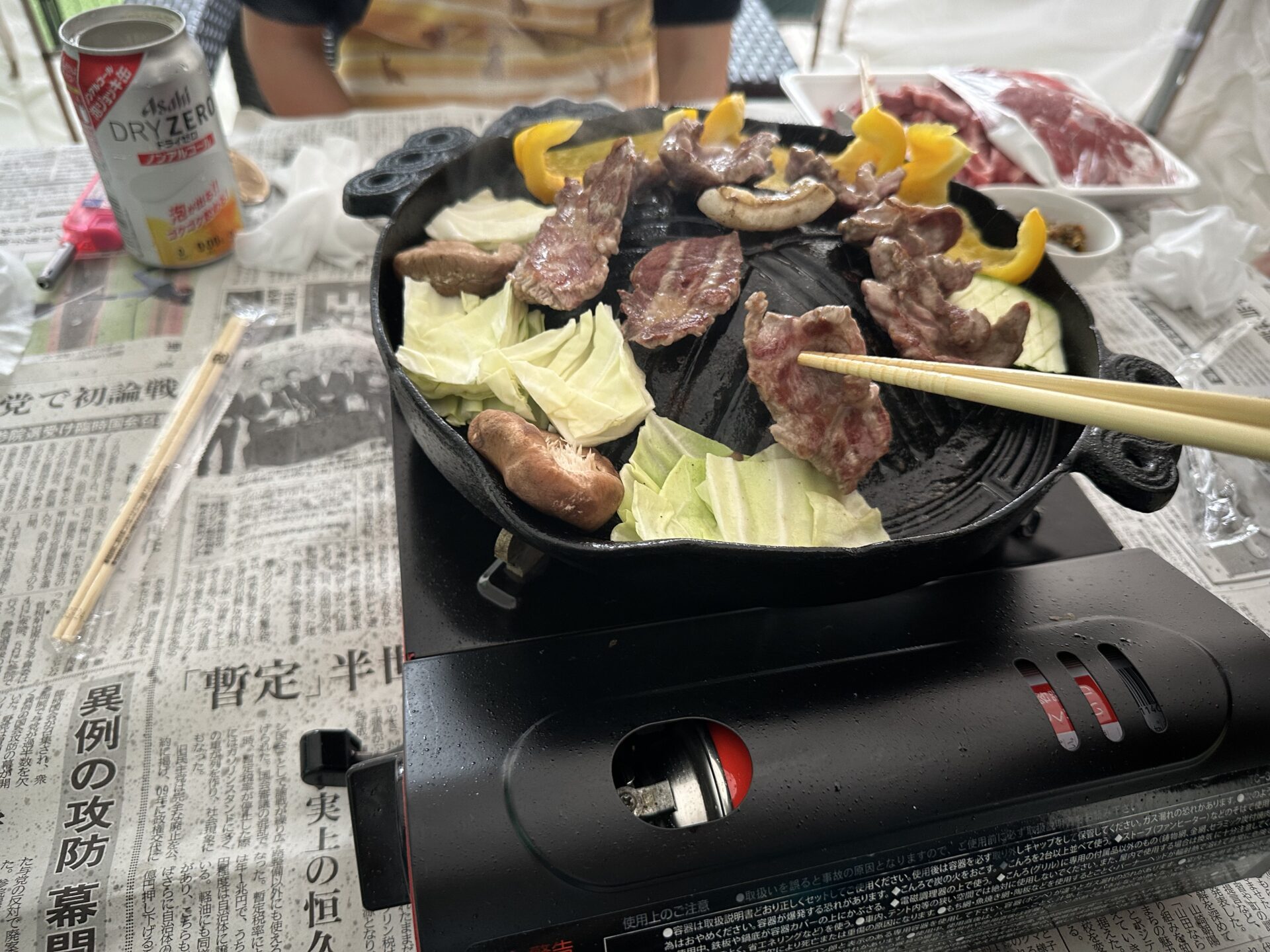 帰省お決まりの庭でジンギスカン2回しました🐏