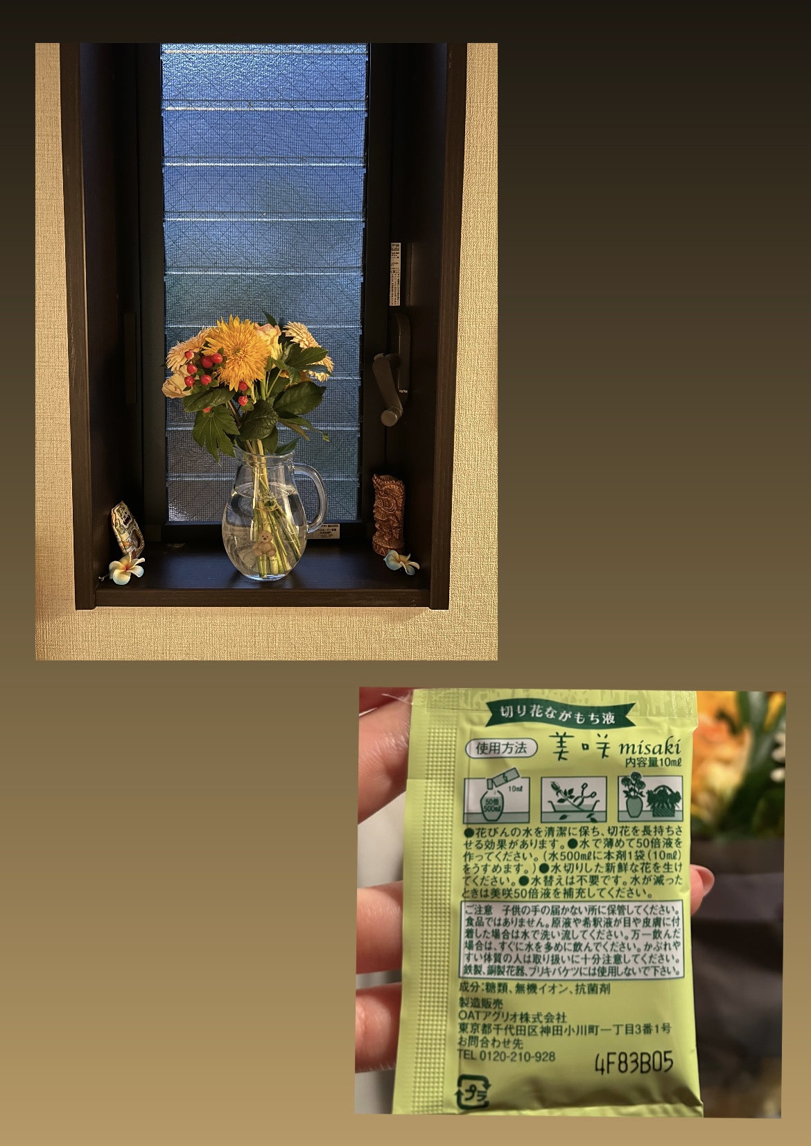 そして丁寧な事に花束に「美咲 misaki」という切り花延命剤が付属しており、商品名が気になりすぎて調べたら「美咲プロ」も売られていました😂笑笑