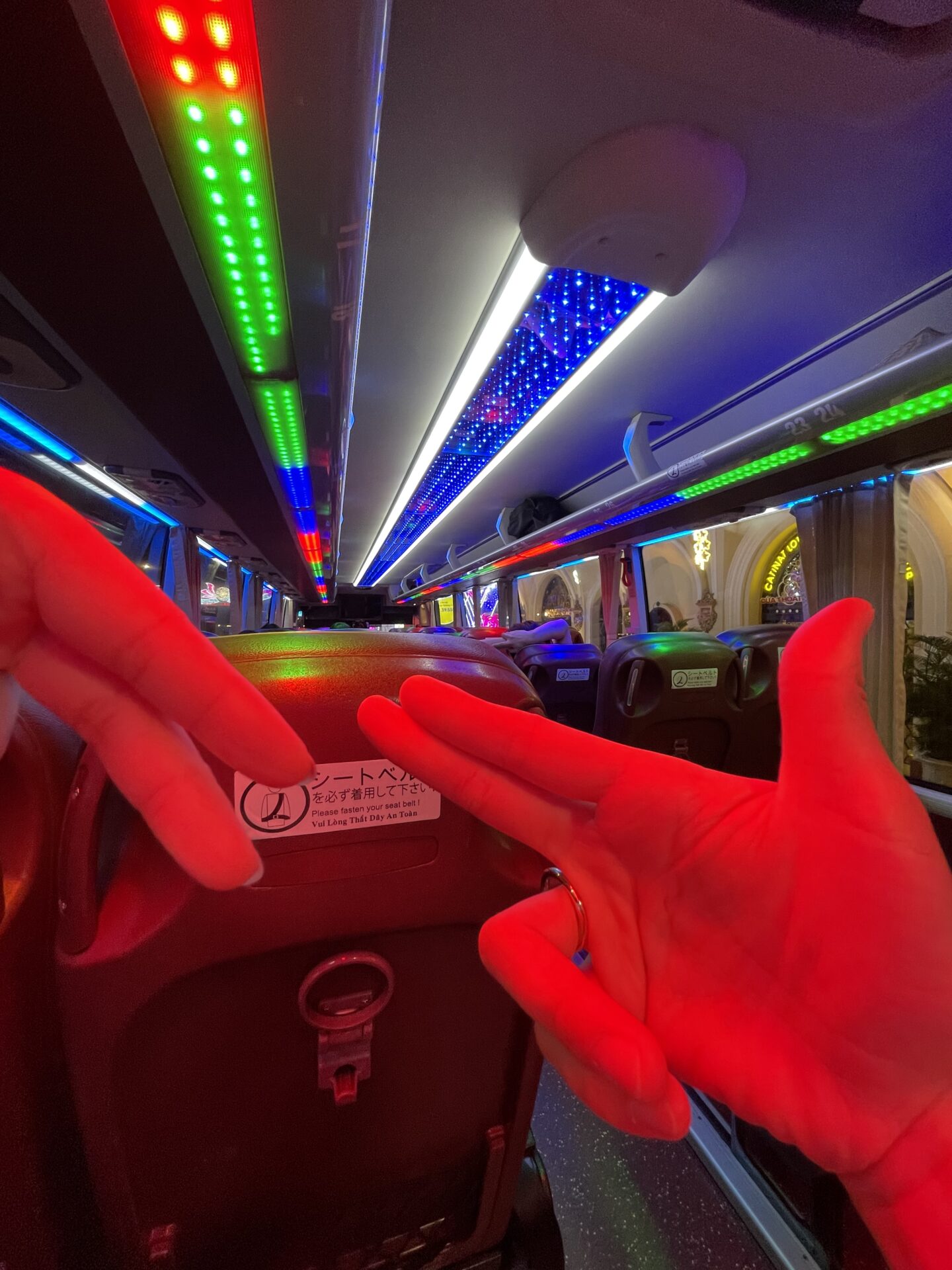 写真は旅先のバスがパリピ仕様でびっくりな1枚です!