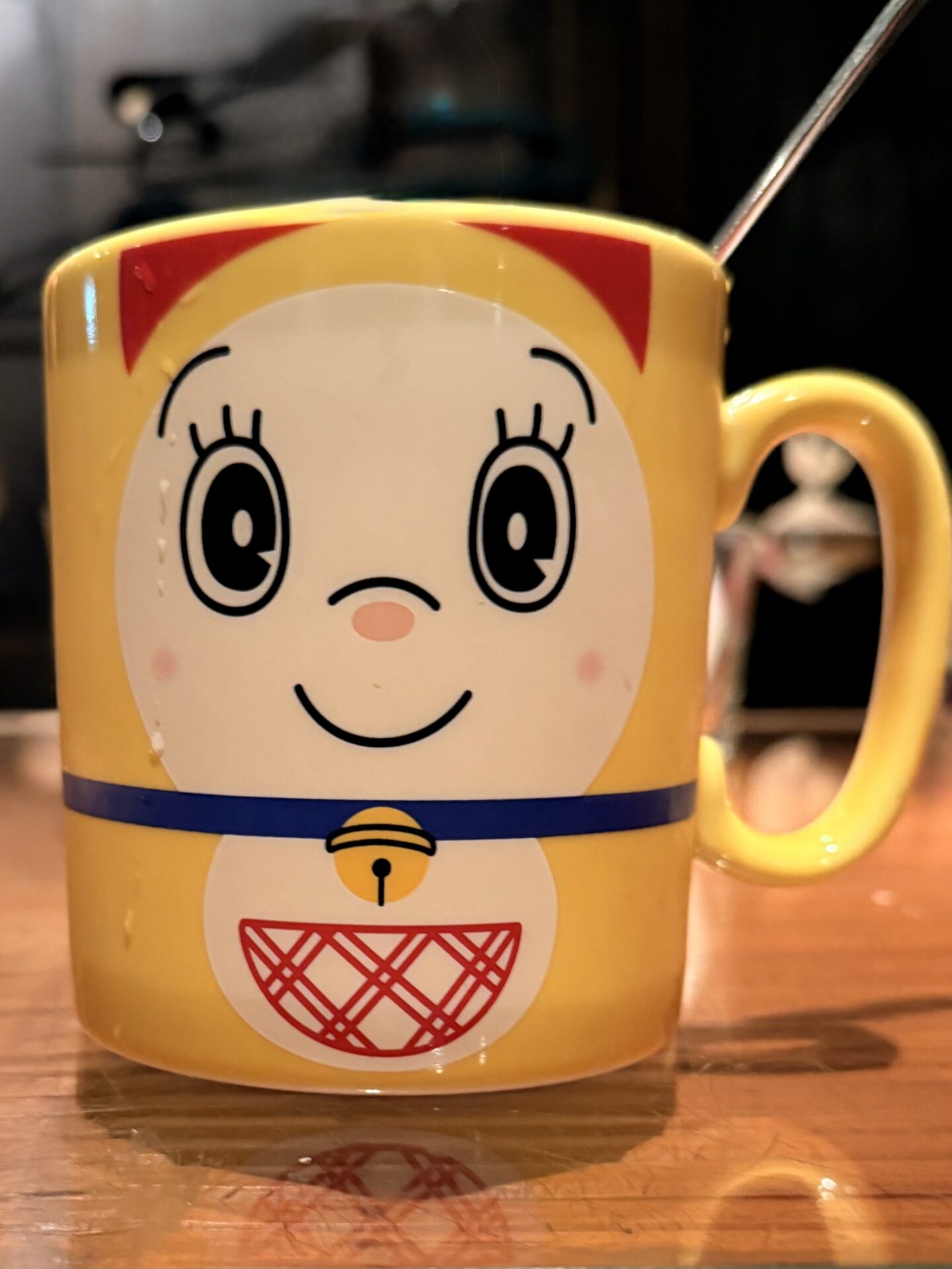 お湯割りを頼んだら、ドラミちゃんマグで出てきました♡可愛いっ
